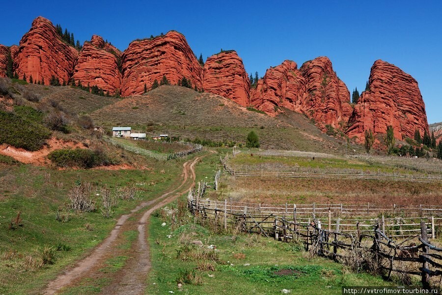 Dzhety-Oguz, translated from Kyrgyz means "7 bulls". Such a specific name was given to the gorge because of the red clay rock mass, which is a kind of hallmark of the gorge. The rocks have a very bright color, and this is quite a rarity for the Tien Shan mountains.